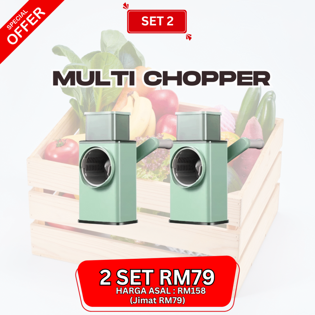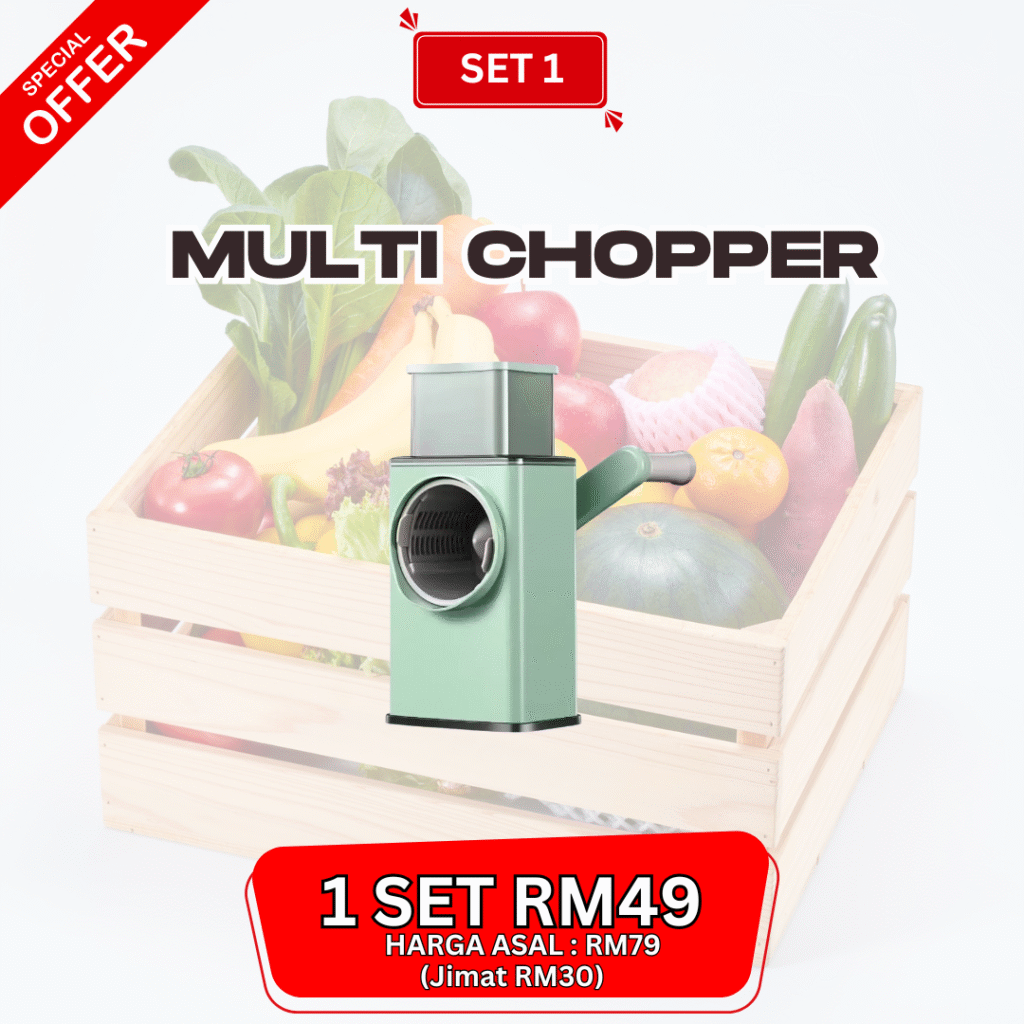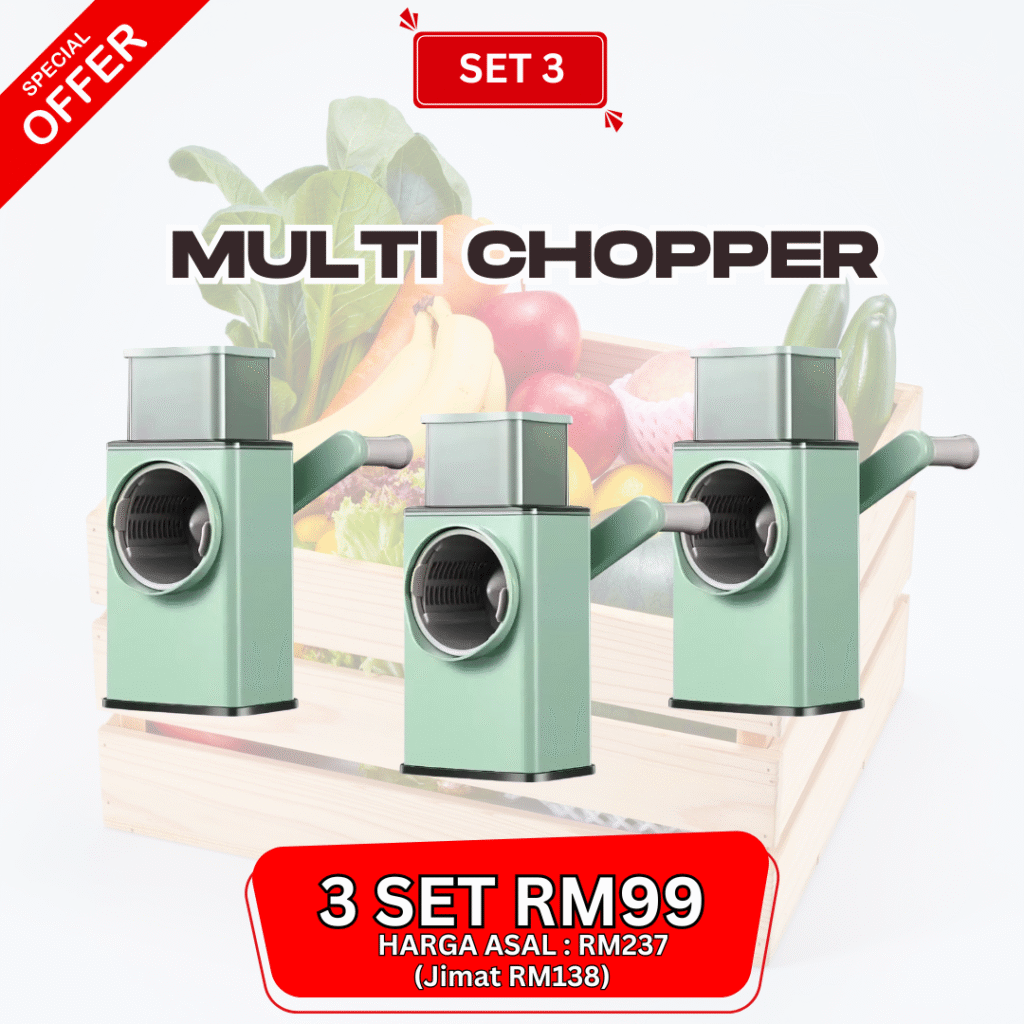 Nak masak rajin tapi nak potong bahan malas sangat.. Ramai yang pernah alami masalah seperti ini.. Ambil masa lama nak sediakan bahan memasak Jari terluka akibat terkena pisau ketika menghiris bawang Mata pedih ketika menghiris bawang terlalu banyak Nak masak cepat tapi bahan tak siap hiris lagi Lama-lama kita jadi penat & stress nak sediakan makanan untuk keluarga. Tapi Jangan Risau! Inilah Solusi Yang Paling Berkesan! Telah Terjual Sepanjang Tahun 0 MEMPERKENALKAN "MULTI CHOPPER"“Nak masak cepat & selamat? Multi Chopper jawapannya.” 🥗✨ Boleh hiris bawang, kentang, lobak merah & pelbagai sayuran dengan cepat 3 pilihan mata chopper percuma – boleh tukar ikut saiz potongan Design selamat & mesra pengguna Mudah pasang & buka → senang nak cuci Jimat masa & tenaga – masak jadi lebih pantas & seronok CARA PENGUNAAN Saiz Produk Kelebihan Guna Pisau BiasaMulti Chopper❌ Risiko tangan luka✅ Selamat, tak sentuh mata pisau❌ Mata pedih bila hiris bawang✅ Tak perlu sentuh bawang lama❌ Ambil masa lama potong✅ Cepat & jimat masa❌ Sukar dapat potongan sekata✅ 3 pilihan mata – hasil cantik & sekata❌ Leceh nak cuci papan + pisau✅ Mudah buka & cuci Apa Kata Pengguna Sebenar? Berita Baik Untuk Yang Grab Hari Ini! Promosi Khas Hari Ini PROMO TAMAT DALAM MASA Jangan Tunggu Lagi Limited Promo Hari IniBertindak Sekarang! Nak Order? Sila Isi Borang Tempahan di Bawah Multi Chopper MYPakej SET 1 - RM49 (1x UNIT MULTI CHOPPER) SET 2 - RM79 (2x UNIT MULTI CHOPPER) SET 3 - RM99 (3x UNIT MULTI CHOPPER)NAMA PENUHALAMATPOSKODNO TELEFONNOTAPOSTAGE COD (RM10)Tempah Sekarang