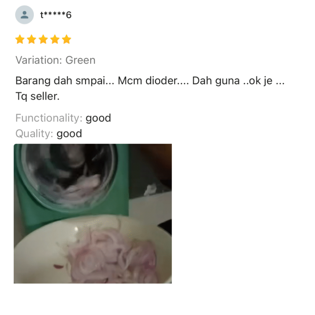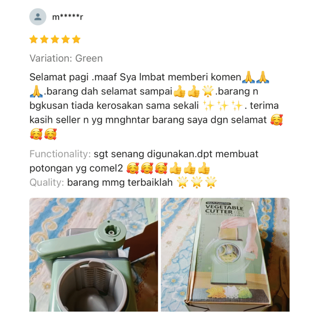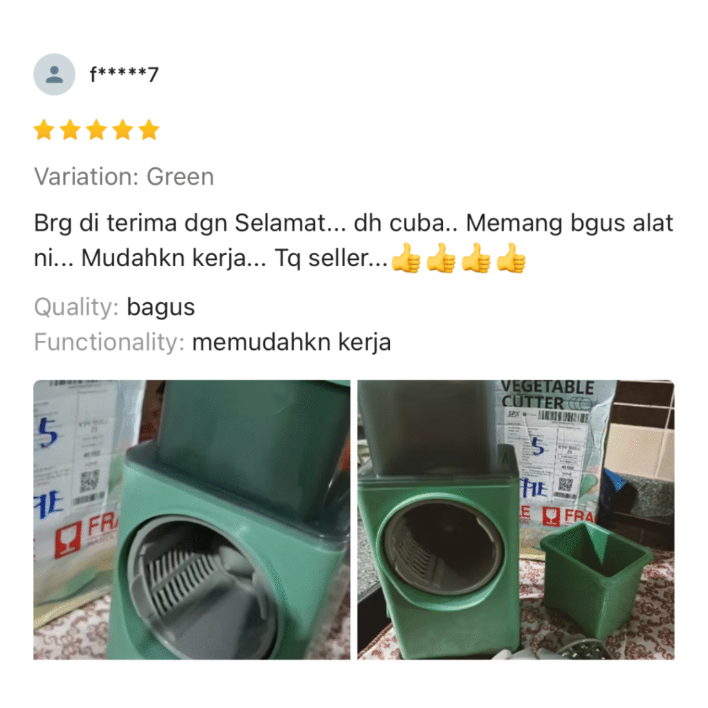 Nak masak rajin tapi nak potong bahan malas sangat.. Ramai yang pernah alami masalah seperti ini.. Ambil masa lama nak sediakan bahan memasak Jari terluka akibat terkena pisau ketika menghiris bawang Mata pedih ketika menghiris bawang terlalu banyak Nak masak cepat tapi bahan tak siap hiris lagi Lama-lama kita jadi penat & stress nak sediakan makanan untuk keluarga. Tapi Jangan Risau! Inilah Solusi Yang Paling Berkesan! Telah Terjual Sepanjang Tahun 0 MEMPERKENALKAN "MULTI CHOPPER"“Nak masak cepat & selamat? Multi Chopper jawapannya.” 🥗✨ Boleh hiris bawang, kentang, lobak merah & pelbagai sayuran dengan cepat 3 pilihan mata chopper percuma – boleh tukar ikut saiz potongan Design selamat & mesra pengguna Mudah pasang & buka → senang nak cuci Jimat masa & tenaga – masak jadi lebih pantas & seronok CARA PENGUNAAN Saiz Produk Kelebihan Guna Pisau BiasaMulti Chopper❌ Risiko tangan luka✅ Selamat, tak sentuh mata pisau❌ Mata pedih bila hiris bawang✅ Tak perlu sentuh bawang lama❌ Ambil masa lama potong✅ Cepat & jimat masa❌ Sukar dapat potongan sekata✅ 3 pilihan mata – hasil cantik & sekata❌ Leceh nak cuci papan + pisau✅ Mudah buka & cuci Apa Kata Pengguna Sebenar? Berita Baik Untuk Yang Grab Hari Ini! Promosi Khas Hari Ini PROMO TAMAT DALAM MASA Jangan Tunggu Lagi Limited Promo Hari IniBertindak Sekarang! Nak Order? Sila Isi Borang Tempahan di Bawah Multi Chopper MYPakej SET 1 - RM49 (1x UNIT MULTI CHOPPER) SET 2 - RM79 (2x UNIT MULTI CHOPPER) SET 3 - RM99 (3x UNIT MULTI CHOPPER)NAMA PENUHALAMATPOSKODNO TELEFONNOTAPOSTAGE COD (RM10)Tempah Sekarang