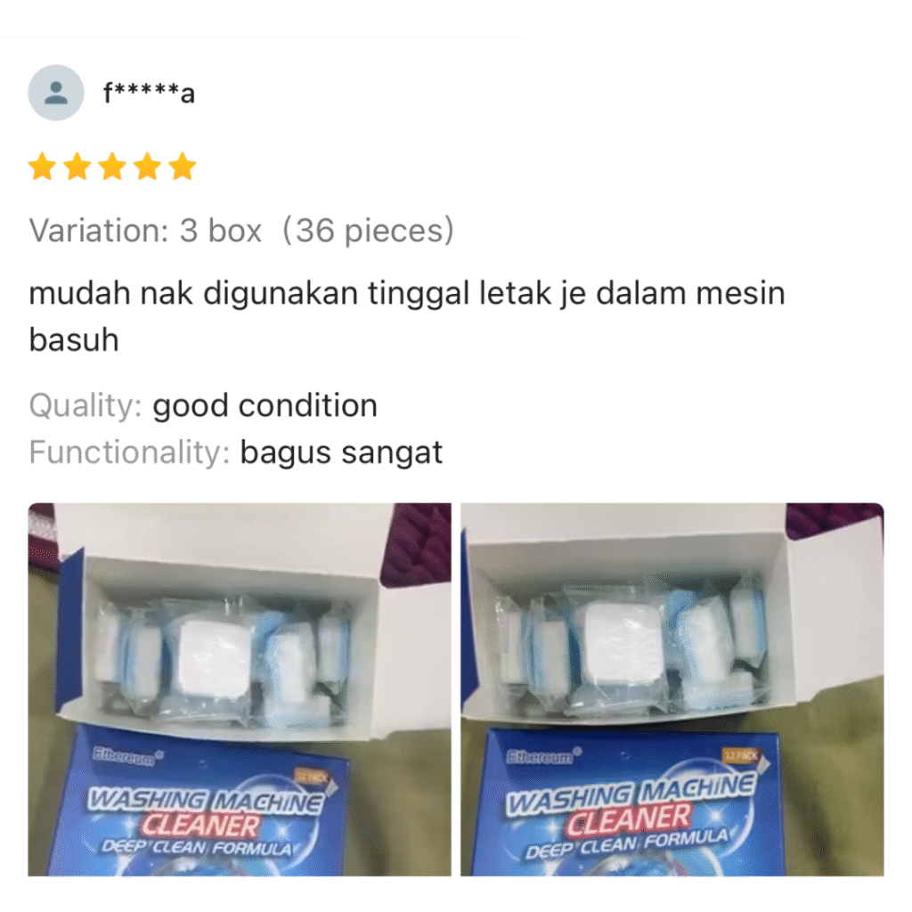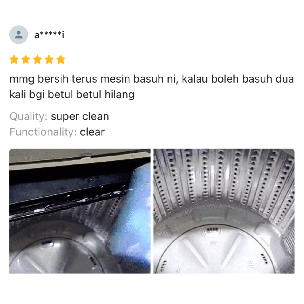 “Dah bertahun guna mesin basuh, tapi tak pernah cuci tub dia?” Masalah Yang Ramai Tak Sedar Mesin basuh nampak elok, tapi tub (ruangan dalam) penuh dengan kotoran & habuk 😩 Bila basuh → baju berbau hapak walaupun guna softener banyak Kuman & bakteria terkumpul → risiko kulit gatal & alahan Mesin jadi cepat rosak sebab tub kotor & tersumbat Mesin yang tak pernah dicuci membuatkan baju makin kotor, bukannya makin bersih! Tapi Jangan Risau! Inilah Solusi Yang Paling Berkesan! Telah Terjual Sepanjang Tahun 0 MEMPERKENALKAN "TUB CLEANER"Pembersih tub secara automatik 1 kotak ada 12 biji – cukup untuk kegunaan sebulan lebih Hanya letakkan 2-3 biji sekali cuci → tub akan bersih automatik Basmi kuman & hapuskan kotoran dalam mesin basuh Elakkan baju jadi busuk / kotor lepas basuh Sesuai untuk mesin top load & front load CARA PENGUNAAN HASIL PENGGUNAAN Kelebihan Basuh BiasaTub Cleaner❌ Tub penuh lendir & kotoran✅ Tub bersih & bebas bakteria❌ Baju tetap bau hapak✅ Baju segar & bersih❌ Kuman melekat pada pakaian✅ Bakteria mati, baju lebih selamat❌ Mesin cepat rosak✅ Mesin tahan lama & jimat kos Apa Kata Pengguna Sebenar? Berita Baik Untuk Yang Grab Hari Ini! Promosi Khas Hari Ini PROMO TAMAT DALAM MASA Jangan Tunggu Lagi Sampai kena infection pada keluarga kita!!Bertindak Sekarang! Nak Order? Sila Isi Borang Tempahan di Bawah Tub Cleaner MYPakej Trial - RM49 (1 Kotak) Combo - RM69 (2 Kotak) Jimat - RM89 (3 Kotak)NAMA PENUHALAMATPOSKODNO TELEFONNOTAPOSTAGE COD (RM10)Tempah Sekarang